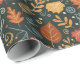 Whimsical Boho Autumn Leaves on Black Wrapping Paper