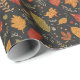 Whimsical Boho Autumn Leaves on Black Wrapping Paper