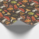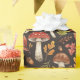 Whimsical Boho Autumn Mushrooms Leaves on Black Wrapping Paper