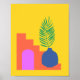 Whimsical Boho Botanical Shapes in Bright Yellow Poster
