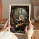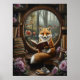 Step into an enchanting woodland library with this whimsical fox art print featuring a curious red fox reading a book by a round window overlooking a magical forest. Surrounded by vintage books, warm cookies, daisies, and a cosy fall view, this fantasy scene is perfect for book lovers, woodland nursery decor, or anyone who adores charming animal illustrations. A beautiful addition to cottagecore homes, cosy reading nooks, and whimsical art collections.