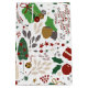 A whimsical holiday motif perfect for your holiday greetings with festive cheer and playful charm. Against a white background, illustration of a classic Christmas motifs in an animated style. Tiny gift box with ribbons and holly leaves with vibrant red berries; jingle bells and holiday dots creating a sense of lively movement capturing the joy and warmth of the season, ideal for spreading holiday magic for any gift.