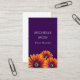 Whimsical Botanical business card, with a colourful boho daisies design on a purple background. With customisable white and black lettering, you add your own information. Great for promoting your business with a floral style.