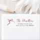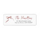 Add a touch of charm to your mail with this Elegant Red Bow Return Address Label. Featuring a whimsical hand-drawn red bow on the left, and, on the right, your family name is beautifully displayed in red script lettering, with your address printed below in clean, simple serif typography. Ideal for anyone who loves minimalist, stylish details, this label is perfect for everyday use or special occasions, adding an elegant finishing touch to your correspondence.