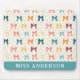 Whimsical Bow Pattern Rainbow Ribbons Custom Name Mouse Mat