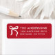 Add a festive finishing touch to your holiday mail with these personalised Christmas return address labels. The design features a white hand-drawn bow on a classic red background, paired with your family name and return address in crisp white lettering. Perfect for sealing Christmas cards, holiday party invitations, and seasonal correspondence, these labels bring a cheerful and coordinated look to all your holiday mailings.