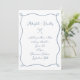 Dusty Blue Wedding Invitation, with a hand drawn bow and ribbon frame and handwriting style font.
