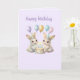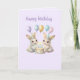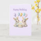 A charming birthday card for twins featuring two adorable pastel bunnies celebrating with balloons and a sweet cake. Perfect for twins’ birthdays, baby celebrations, and kids who love cute animals.