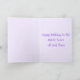 This card is great fun and good quality. I loved the humour inside and on the back. There is the opportunity to change the orientation of this card from landscape to portrait, which I did. It is relatively straightforward to amend the typeface to fit the new orientation. It was well packaged with no plastic. The printing on this card is excellent.