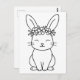 Whimsical Bunny with Floral Crown Line Art Postcard