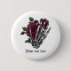 Whimsical gothic burgundy floral skeleton hand button customisable to your event specifics.