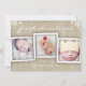 A collage of three photos is featured on the front of this lovely, fun design that incorporates a burlap texture effect and festive white sprinkling of snowflakes across the top and bottom edge of the card. Large additional photo on the back. Whimsical typography in white wishes family and friends a Merry Christmas from your family to theirs.