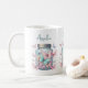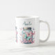 A mug with a magical image featuring pastel colored butterflies in a jar.
