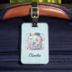 A luggage tag with a magical image featuring pastel colored butterflies in a jar.