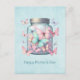 Mother's day postcard with a magical image featuring pastel colored butterflies in a jar.