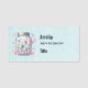 Name tag with a magical image featuring pastel colored butterflies in a jar.