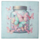 Ceramic tile with a magical image featuring pastel colored butterflies in a jar.