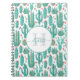A chic, cute white background decorated with a whimsical pattern of painted cactus, cacti and succulents and red and green hearts. A college ruled notebook for school or your home office.