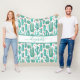 Whimsical cactus green white pattern monogram fleece blanket