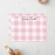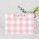 Create your own personalised stationery note cards with a cute pastel pink and white large gingham check pattern with whimsical calligraphy for her name.