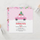 Whimsical Car with Christmas Gifts in Pink Invitation