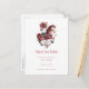Save the date postcard with a cute retro style carousel horse. Drawn in Pretty pink colors with fancy flowers.