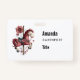 Name tag with a cute retro style carousel horse. Drawn in Pretty pink colors with fancy flowers.
