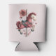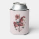 A can cooler with a cute retro style carousel horse. Drawn in Pretty pink colors with fancy flowers.