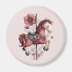 Magnet with a cute retro style carousel horse. Drawn in Pretty pink colors with fancy flowers.