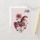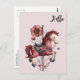 A postcard with a cute retro style carousel horse. Drawn in Pretty pink colors with fancy flowers.