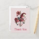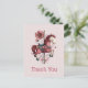 Thank you postcard with a cute retro style carousel horse. Drawn in Pretty pink colors with fancy flowers.