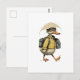This charming postcard features a cartoon duck walking with a cream umbrella, yellow jacket, and gray backpacks on a clean white background. The outlined, playful style and rainy-day details create a lighthearted and cheerful aesthetic. Perfect for sending friendly notes, encouragement, travel messages, or simply brightening someone’s day. A versatile and delightful design that stands out with its cute personality.
