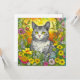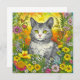 Pretty colourful whimsical cat and flowers yellow floral art. Ai cat and flowers.