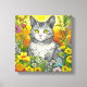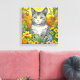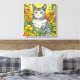 Whimsical Cat and Flowers Canvas Print