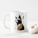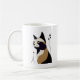 Coffee mug with a graphic art-style portrait of a cat that balances elegance with simplicity.