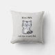 Throw pillow with a funny, sarcastic, and a little sassy cat that is clearly declaring itself the preferred choice for affection over the dog.