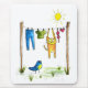 Whimsical Cat on a Clothesline Mouse Mat