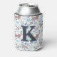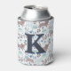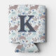 Whimsical Cat Pattern, Blue Grey Monogram Can Cooler
