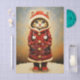 Whimsical Cat, Red Coat, Snow EJ5 Decoupage Tissue Paper