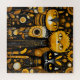Imaginative Cats with brightly colored yellow eyes, against black and gold decorative design. Folk art at its best. Square puzzle.
