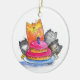 Whimsical Cats with Birthday Cake Ceramic Tree Decoration