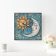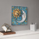 A whimsical sun and moon and stars square wall clock. A celestial clock to keep time with.