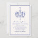 Whimsical chandelier, blue hand drawn wedding invitation