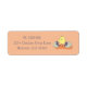 Some cute light orange Easter return address labels with the whimsical illustration of a little yellow chick who just hatched from its egg shell .