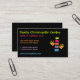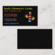 These chiropractic business cards features colourful text and whimsical chiropractic hands and spine logo, all on a black background. The reverse side of the card is also black, which can be changed by clicking on "Customise It."