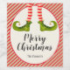 Fun elf legs wearing red and ivory striped tights and green boots with jingle bells, and your holiday Christmas greeting in chic lettering, personalise these wine bottle labels to serve at your holiday party or to give as gifts or party favours for business gifts, corporate gifts.