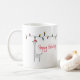 Whimsical hand drawn giraffe illustration with red Santa hat, a string of holiday lights and customisable "Happy Holidays" text