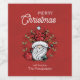 A cute whimsical Christmas gnome on a red background, these personalised wine bottle labels are great to add to holiday gift-giving.