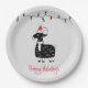 New modern, non-traditional holiday design for 2020 features a whimsical black goat illustration with red Santa hat, a string of holiday lights and customisable "Happy Holidays" text