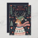 Merry Christmas Card Illustration Featuring Deer, Cozy Knit Scarf, and Festive Forest Design